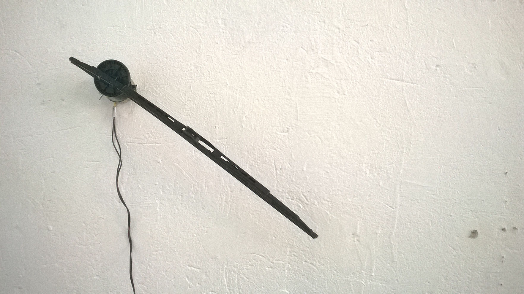 umbral electrónico limpiabrisas agarrado a un motor en la pared/ventana dimensiones variables El Vitrinazo / art for sale (2017) 2015